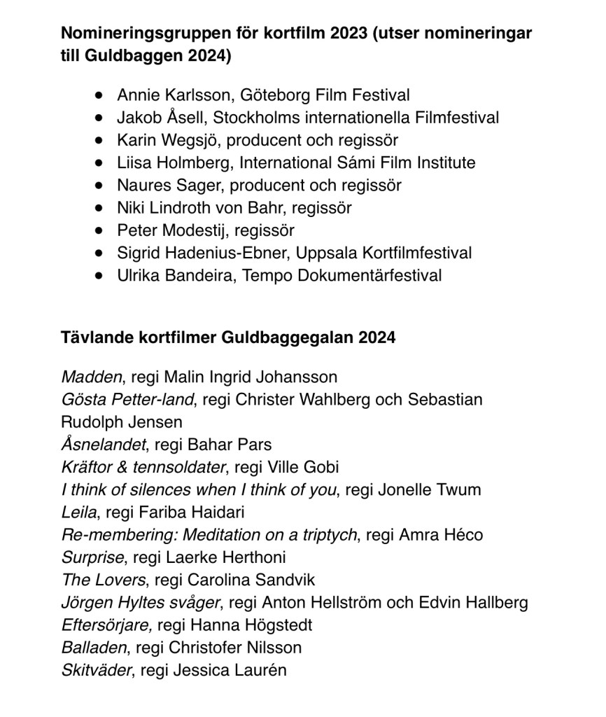 “Re-membering: Meditation on a Triptych” by Amra Hećo competing in the short film category for the most prestigious film award in Sweden “Guldbaggen”